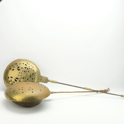 Twee 18e eeuwse koperen beddepannen met ijzeren steel