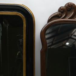 | Omschrijving | Lot van twee antieke spiegels: een eikenhouten 19e eeuwse Soester spiegel en een 19e eeuwse Napoleon III stijl spiegel met zwart-goude rand en gebogen bovenkant. |