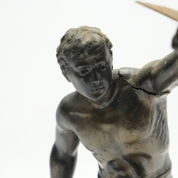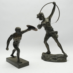 | Omschrijving | Twee zamakken sculpturen van een boogschutter en een Romeinse strijder met schild. Vroeg 20e eeuws. |