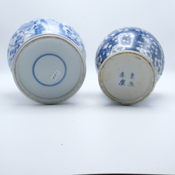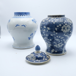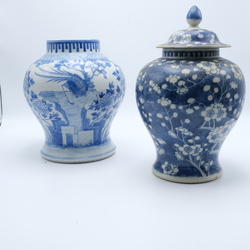 | Omschrijving | Twee 19e eeuwse Chinees porseleinen balustervazen, Blauw/wit met decors van bloesemtakken en een goudfazant op de rotsen bij pioenrozen. |