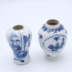 | Omschrijving | Lot van twee Chinees porseleinen theebusjes: een 18e eeuwse Chinees porseleinen theebus met floraal decor, en een 19e eeuws Kangxi revival theebusje met blauw-wit decor van lijzen |