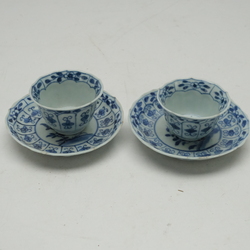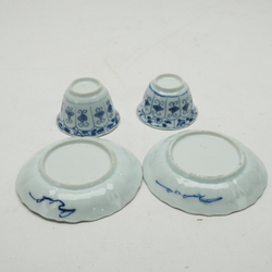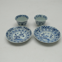 | Omschrijving | Lot van twee vroeg 18e eeuwse Chinees porseleinen kop en schotels, blauw-wit. Kangxi periode |