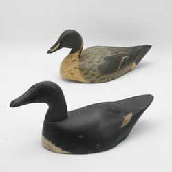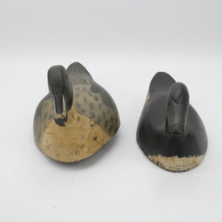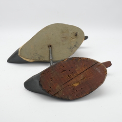 | Omschrijving | Lot van twee vroeg 20e eeuwse lokeenden, beide beschilderd. Eén met lood |