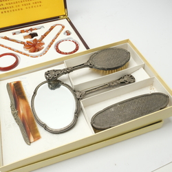 | Omschrijving | Lot divers (3x): een vierdelige verzilverde kapset in doos, een agaten sieradenset in houten cassette, gemerkt ‘Natural agate Wu Yi Ling’ en een onedele sieradenset |
