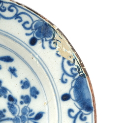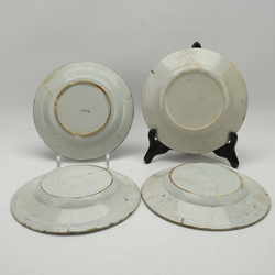 | Omschrijving | Vier 18e eeuws Delfts aardewerken schotels. Blauw / wit en sepia. Chinoiserie met diverse florale decors |