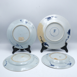 | Omschrijving | Vier Chinees 18e eeuwse Chinees porseleinen schotels. Blauw/wit met florale motieven en een bloemenmand op het plat. Qianlong en Kangxi periode. |