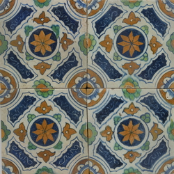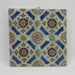 | Omschrijving | Vier antieke 17e eeuwse ornamenttegels, polychroom decor met stermotief |
