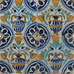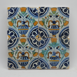 | Omschrijving | Vier antieke 17e eeuwse tegels, polychroom decor van bloempotten |