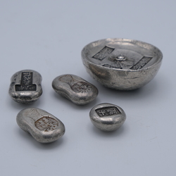 Kavel 786 Vijf wit metalen Oosterse gewichten.