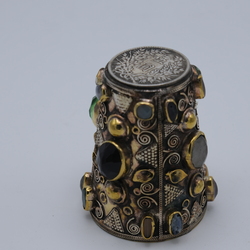 Kavel 1005 Wijnbeker bezet met edelstenen en Chinese tekens.