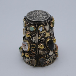 Kavel 1078 Wijnbeker bezet met edelstenen en Chinese tekens.
