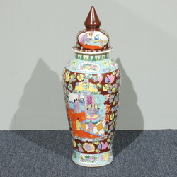 | Omschrijving | Een 20e eeuwse Chinese Famille Rose vaas, rijkbeschilderd met decor van kostbaarheden, bloemen en figuren |