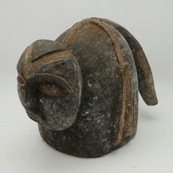 | Omschrijving | Een houten Afrikaans masker, deels beschilderd en met een gestoken mannenhoofd. Volgens label uit Liberia |