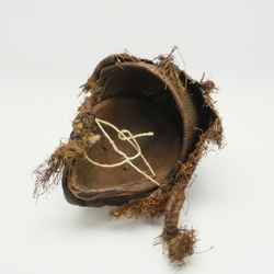 | Omschrijving | Een houten Afrikaans masker, deels beschilderd en met glazen ogen. Hoofdtooi versierd met spijkers, touw en stof. |