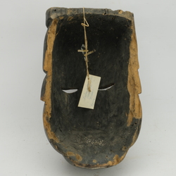 | Omschrijving | Een houten Afrikaans masker, deels zwart gepatineerd Badanki / Tungo stam uit Kameroen |