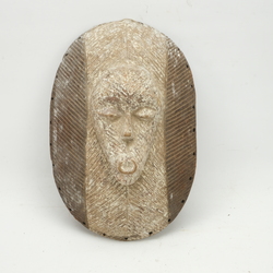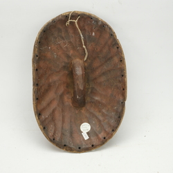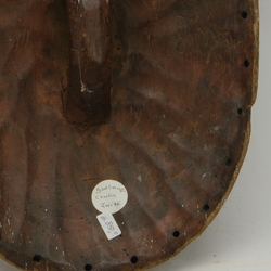 | Omschrijving | Een houten Afrikaans houten masker, schild met een gezicht. Sonyale, Congo, Zaire. Met resten van beschilderingen |