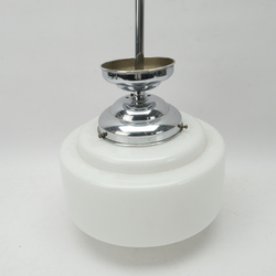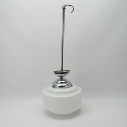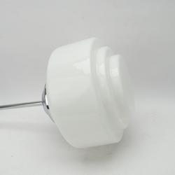 Een 20e eeuwse witglazen art deco lamp met chromen montuur