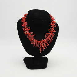 | Omschrijving | Een bloedkoralen staafjescollier met 14 karaats (585/1000) gouden slot |
