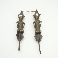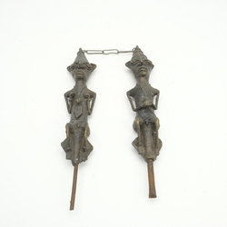 | Omschrijving | Een paar bronzen Nigeriaanse Yoruba Ogboni Edan figuren. Aan elkaar verbonden door een bronzen ketting. 20e eeuws. |