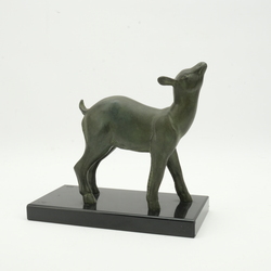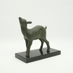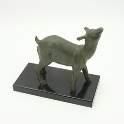 | Omschrijving | Een vroeg 20e eeuws bronzen beeld op marmeren sokkel, voorstelling van een jong geitje. |