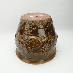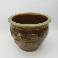 | Omschrijving | Een 20e eeuwse Chinese bruin aardewerken jardiniere met reliëf decor van draken |