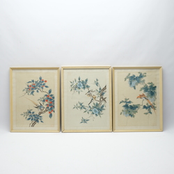 | Omschrijving | Drie 20e eeuwse Chinese schilderijen op zijde, voorstellingen van vogels tussen vruchten en bloemen op takken. Allen rechtsonder gemerkt met rood zegelmerk |
