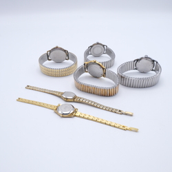 | Omschrijving | Lot van zes 20e eeuwse polshorloges, vier herenhorloges en twee dameshorloges. Herenhorloges allemaal handopwinders, 2x Prisma, Monté, Pontiac Memodate. Dameshorloges beide quartz op vergulde band, Commodoor en Cordella |