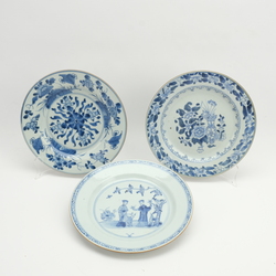 Drie 18e eeuwse Chinees porseleinen borden