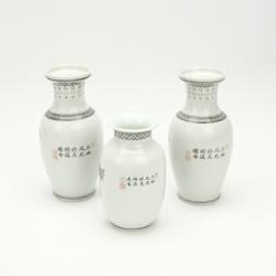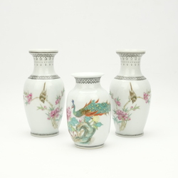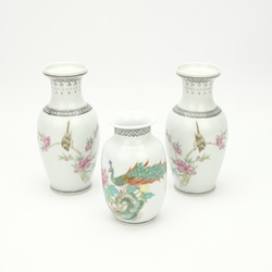 | Omschrijving | Lot van drie 20e eeuwse Chinees porseleinen vazen, Republiek periode. Eén met pauw op rots, twee met vogel op tak. |