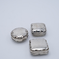 | Kavel | 1405. Drie antieke zilveren pillendoosjes |