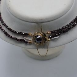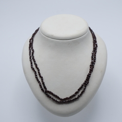 | Omschrijving | Een antiek tweerijig granaten halssnoer aan een 14 krt gouden gegraveerde sluiting met geslepen granaat. |