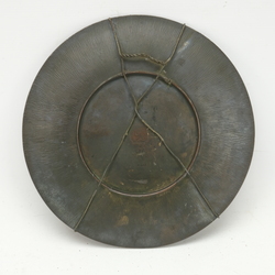 | Kavel | 1136. Gepatineerd metalen schotel met Oosters landschap. |