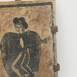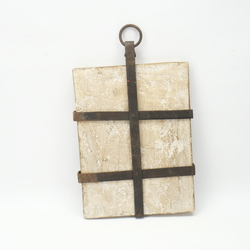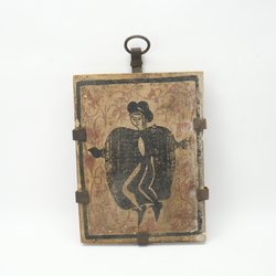 | Omschrijving | Antieke gispen plaquette met Oosterse of Zuid-Amerikaanse beschildering, in metalen frame |