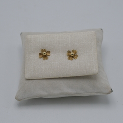 | Omschrijving | Set van twee 14 karaats (585/1000) geelgouden oorknoppen in de vorm van bloemen. Gemerkt '585' op de achterzijde. |