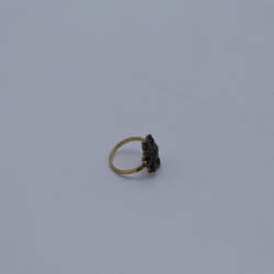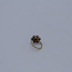 Een 14 karaats geelgouden ring bezet met zeven ronde granaten