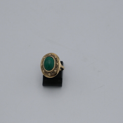 | Omschrijving | Een 14 karaats (585/1000) geelgouden damesring met ovale malachiet. |