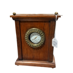Antiek eiken horlogekastje, compleet met antiek zilveren horloge.