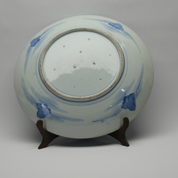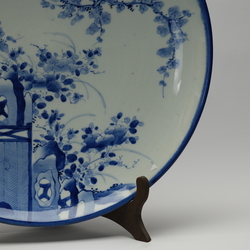 | Omschrijving | Een antieke laat 19e eeuwse Japanse blauw-witte schotel met decor van rotsen een boom in bloesem. |