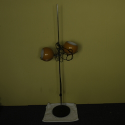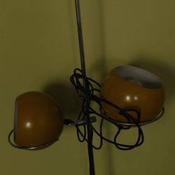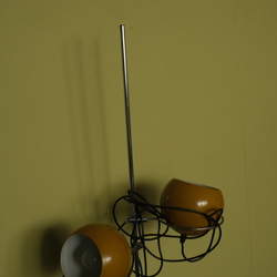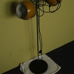 Een jaren ’70 bollamp met zwarte voet en gele bollen