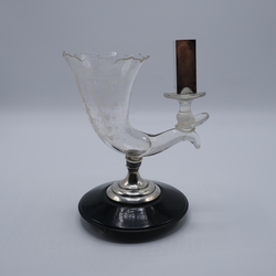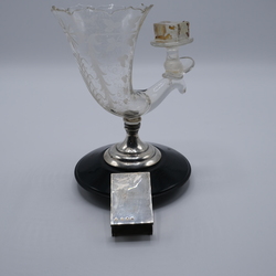 | Omschrijving | Kristallen hoorn des overvloeds, geplaatst op zilveren voet met zwart basement en zilveren luciferhouder. |