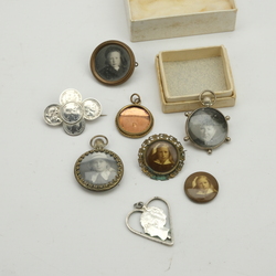 | Omschrijving | Lot diversen, waaronder foto’s in medaillons, een Willem III broche en een Wilhelmina hanger. |