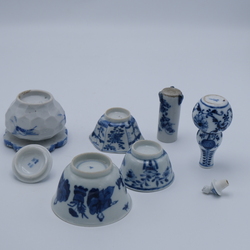 | Omschrijving | Lot divers Chinees porselein: een 18e eeuws Kangxi zeskantig kopje, een 18e eeuws rond Kangxi kopje en een 19e eeuws kopje. Met daarbij twee stuks Japans porselein en een Duits vaasje, gemerkt met ‘gekruiste T’ |