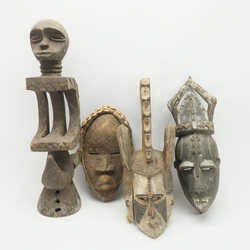 | Kavel | 1320. Lot van drie Afrikaans houten maskers en een sculptuur |