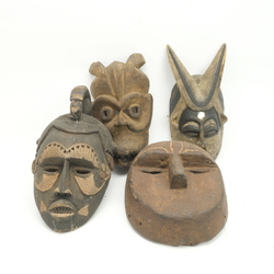 | Omschrijving | Een lot met vier houten maskers, diverse voorstellingen en uit diverse landen, waaronder Nigeria |