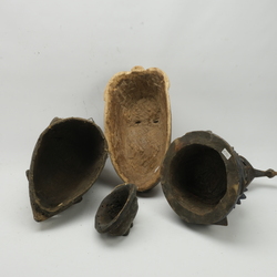 | Omschrijving | Lot met vier Afrikaans houten maskers. Twee met beschilderde gezichten. Uit oa Nigeria |