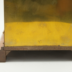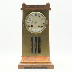 En geel- en roodkoperen Nieuwe Kunst pendule op eikenhouten basement, ca. 1910