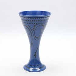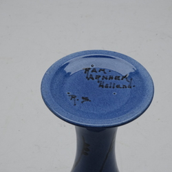 | Omschrijving | Een vroeg 20e eeuwse blauw geglazuurde keramieken vaas met zwart decor, lijnen en stippen. Onderop gesigneerd Ram Arnhem Holland & schildersmonogram R.S. = Roelof Sterken |
