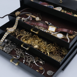 | Omschrijving | Sieradenkistje gevuld met diverse 20e eeuwse sieraden, waaronder parels |
