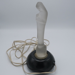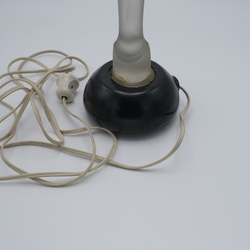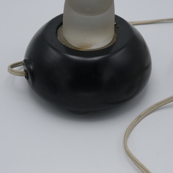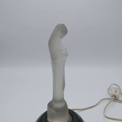 | Omschrijving | Een art deco gesatineerd persglazen sculptuur, 'Madonna met kind' op zwart keramieken voetstuk met lampje. Ontwerp Steph Uiterwaal (1889-1960) voor glasfabriek Leerdam, ca. 1930. |