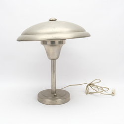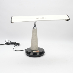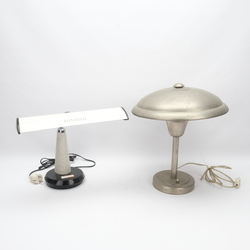 | Omschrijving | Lot van twee design bureaulampen: een art deco model met ronde kap en een vintage model met langwerpige kap en buigbare hals, gemerkt National |